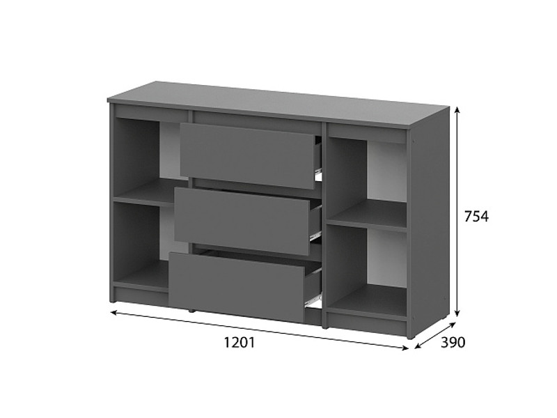- Комод 3 ящика двухстворчатый Денвер Графит серый
