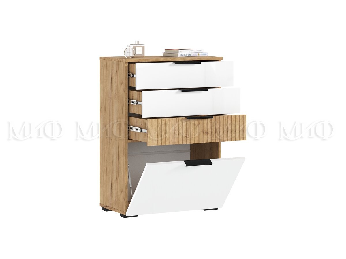 - Комод (600) Роджина Белый глянец/Дуб Крафт
