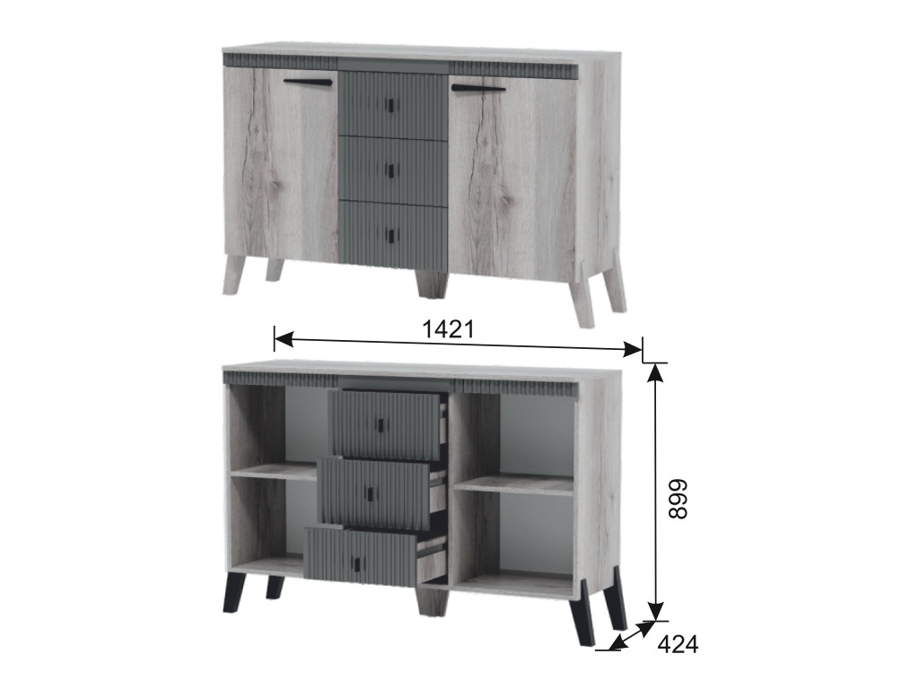 - Комод с ножками Ольга 3 дуб делано