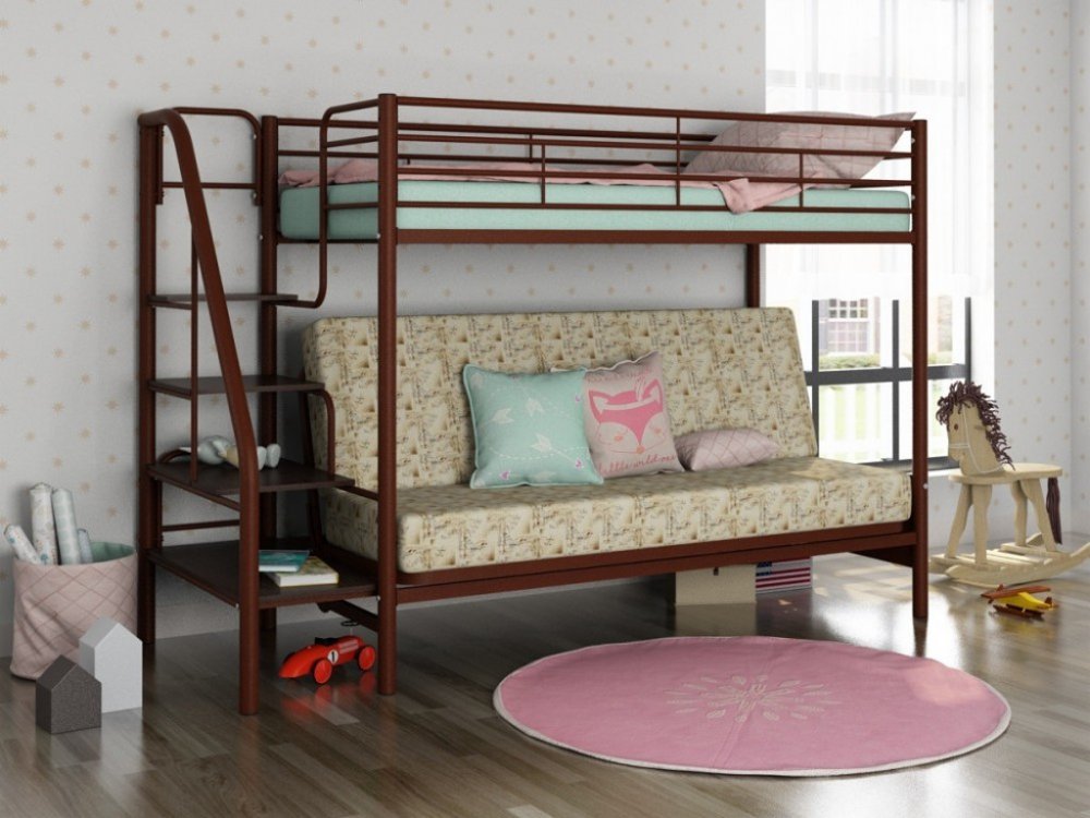 - Двухъярусная кровать с диваном Мадлен 3 коричневый