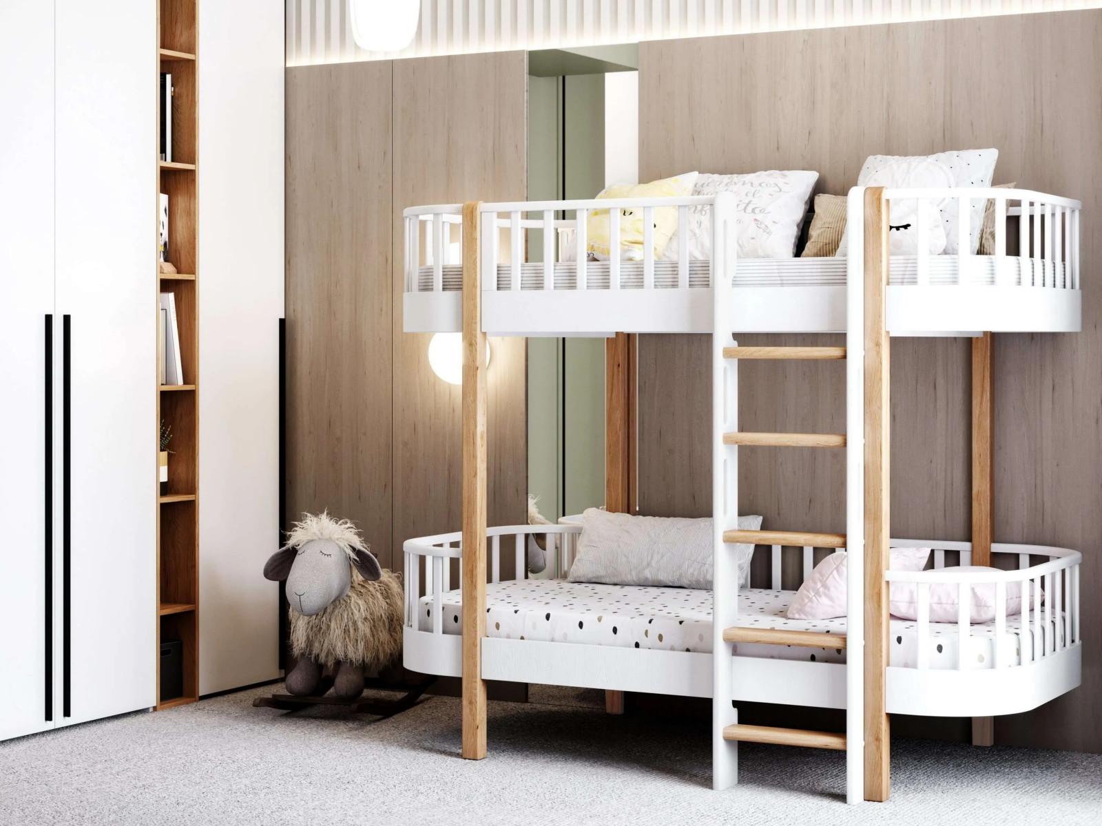 Двухъярусную кровать можно собрать только на правую сторону. Конструкция изделия не позволяет установить лестницу с левой стороны.