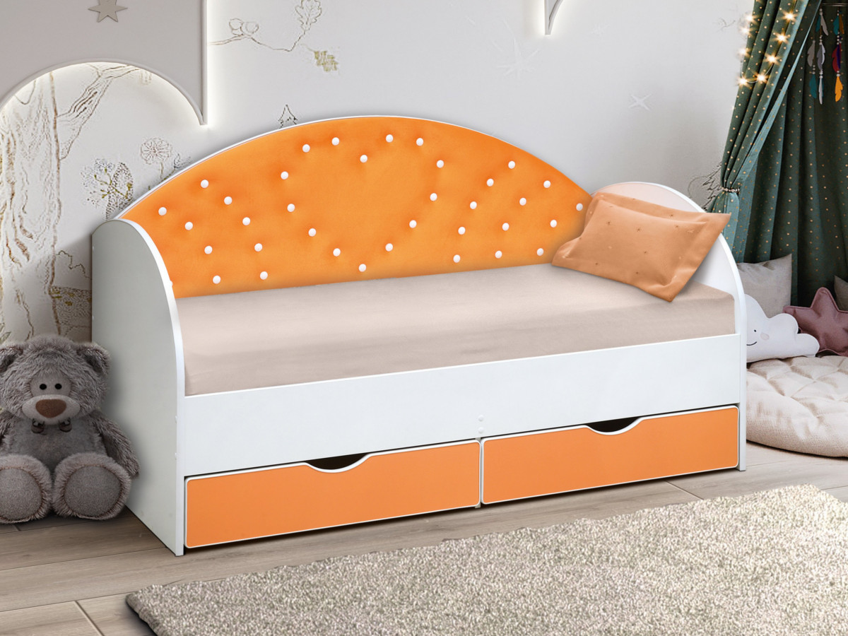 - Кровать с продольной мягкой спинкой Сердце №3 800х1600 мм розовая
