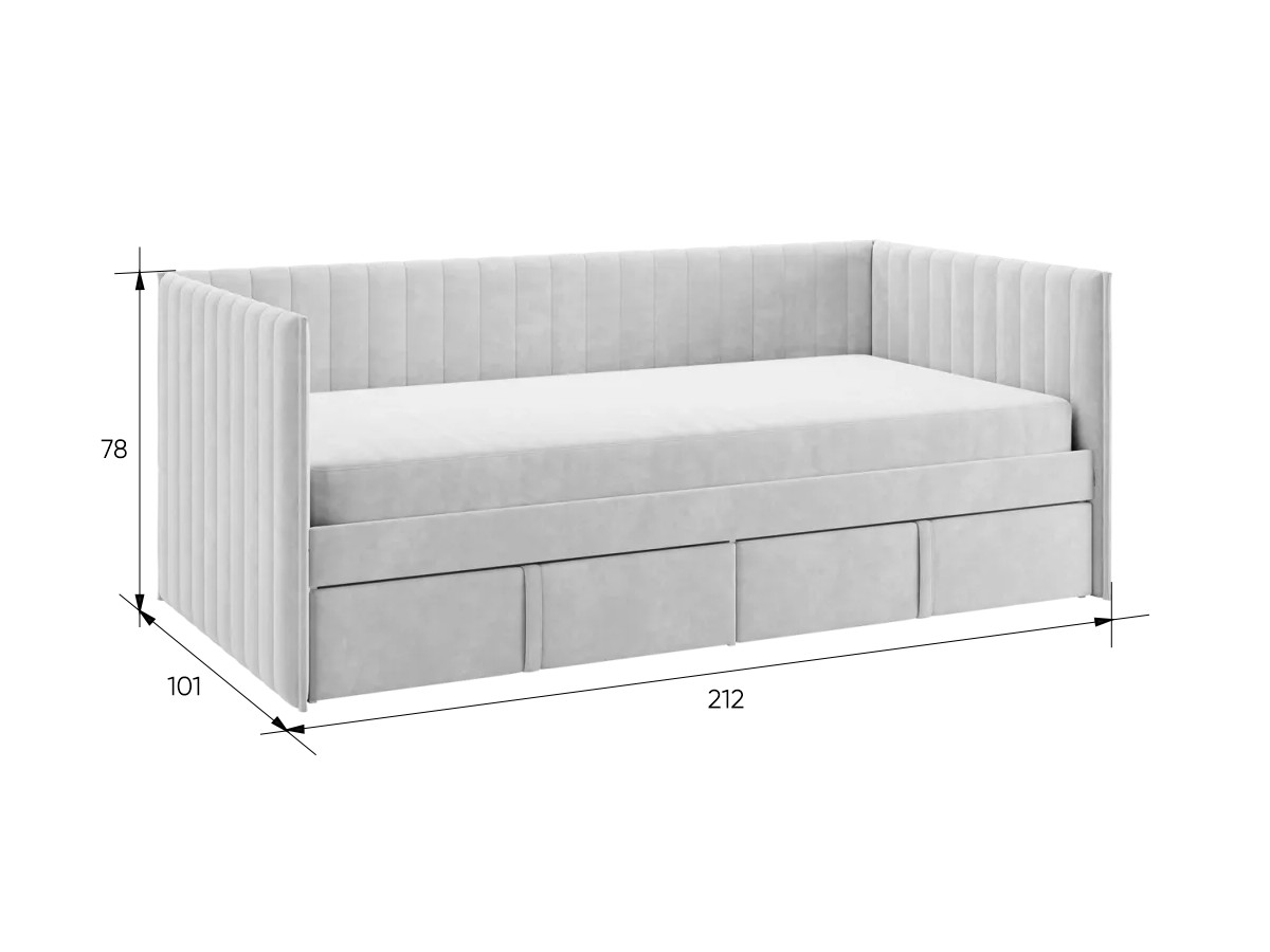 Дополнительно можно приобрести наматрасник в цвет обивки и мягкий ограничитель.