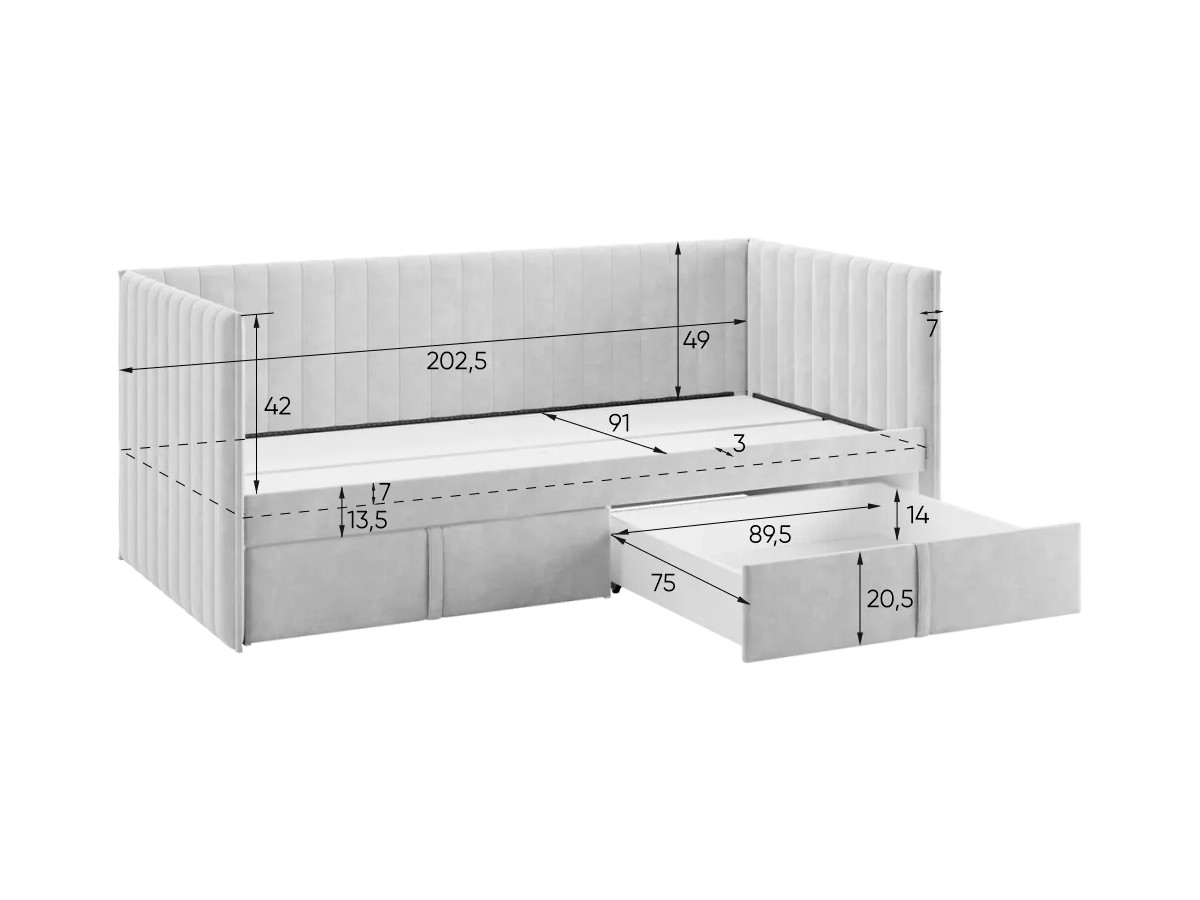 - Кровать-софа с ящиками Твикс цвет велюра нежно-розовый