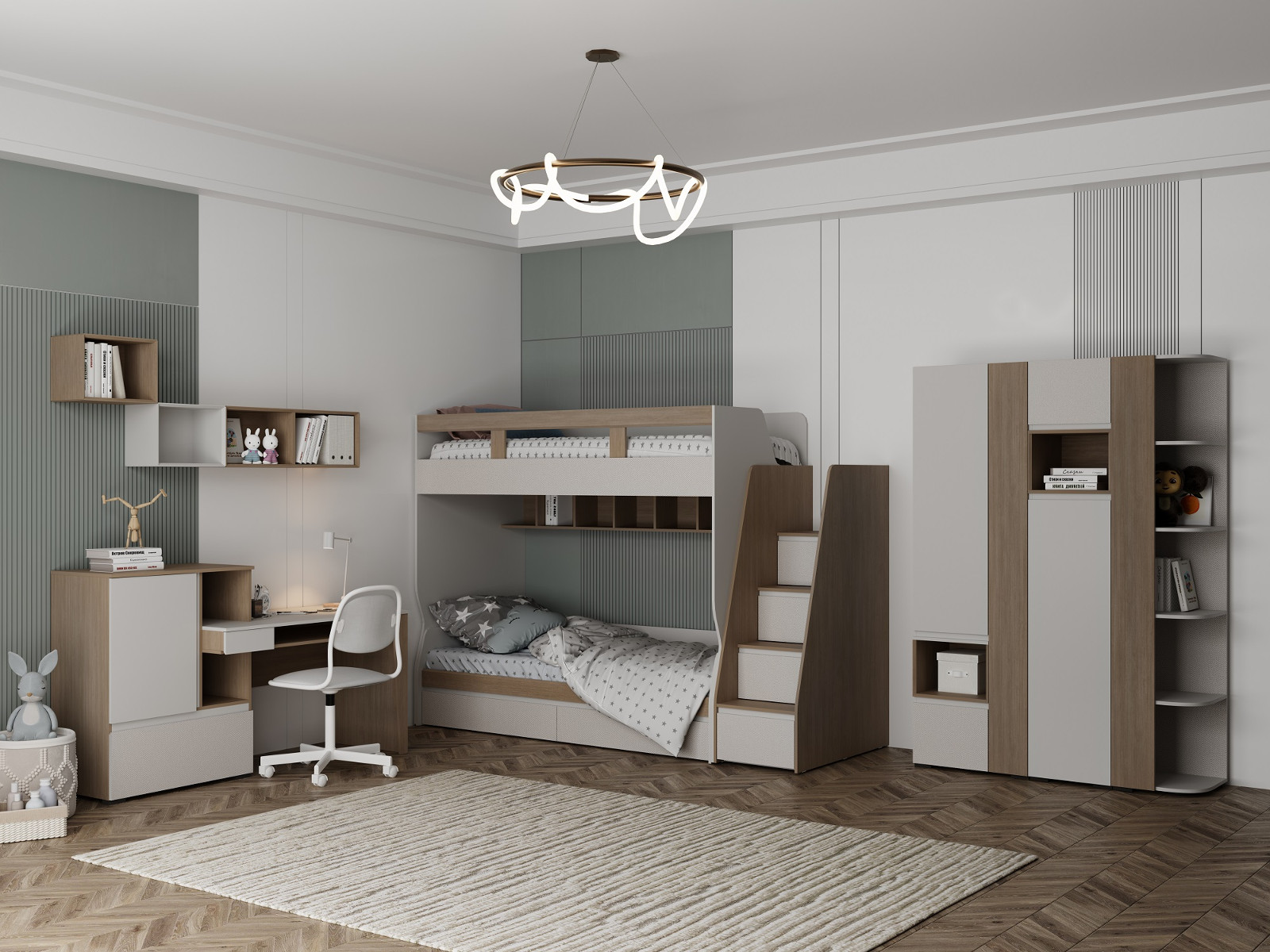 - Кровать в сборе Каспер с прямой лестницей