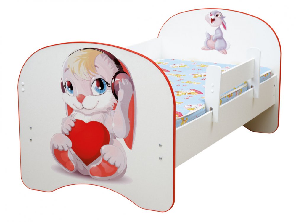 - Кровать детская с фотопечатью без ящика Зайчик