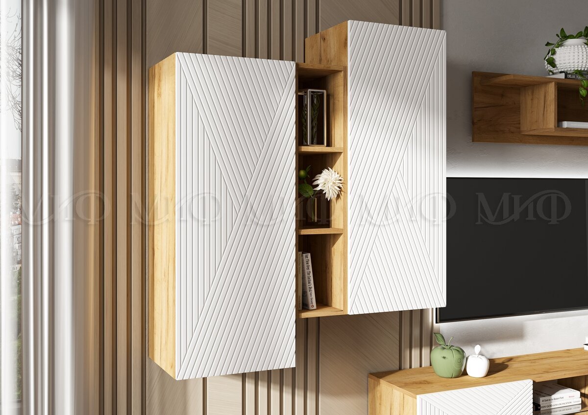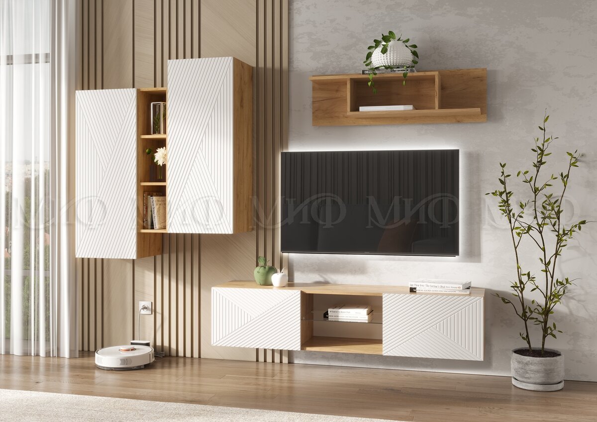 Цена за комплект: Тумба ТВ подвесная, Шкаф подвесной комбинированный, Полка навесная