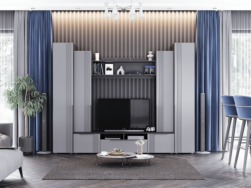 Цена за комплект: Тумба ТВ 2000, Пенал (надстройка) (2шт), Полка настенная №1, Пенал с полками (2шт)