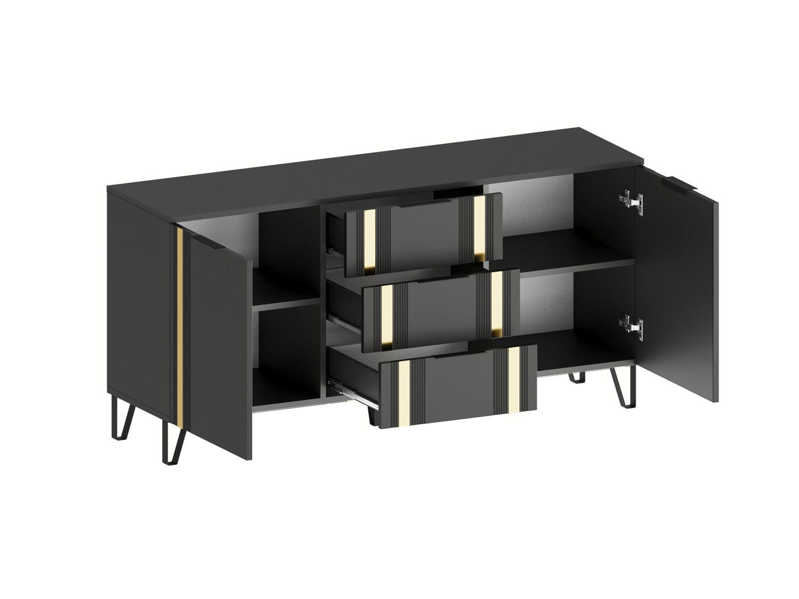 - Фасады МДФ украшены декоративной металлической лентой в цвете "Золото браш".