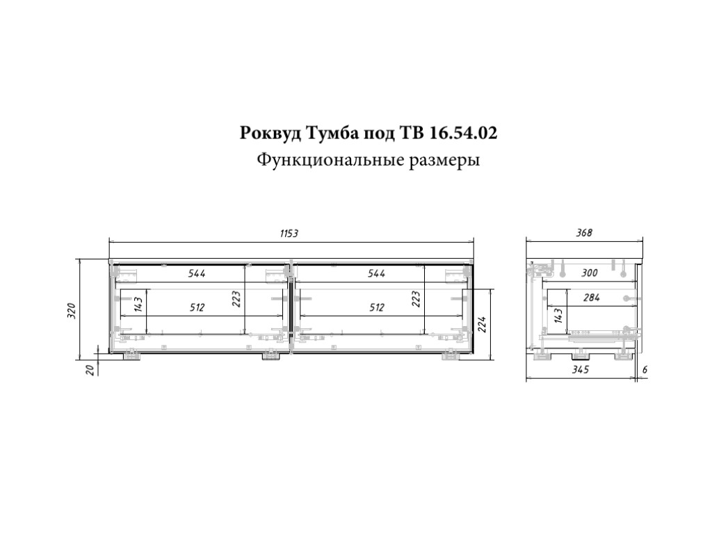 Размер ШхГхВ: 1153 x 368, В 320 мм