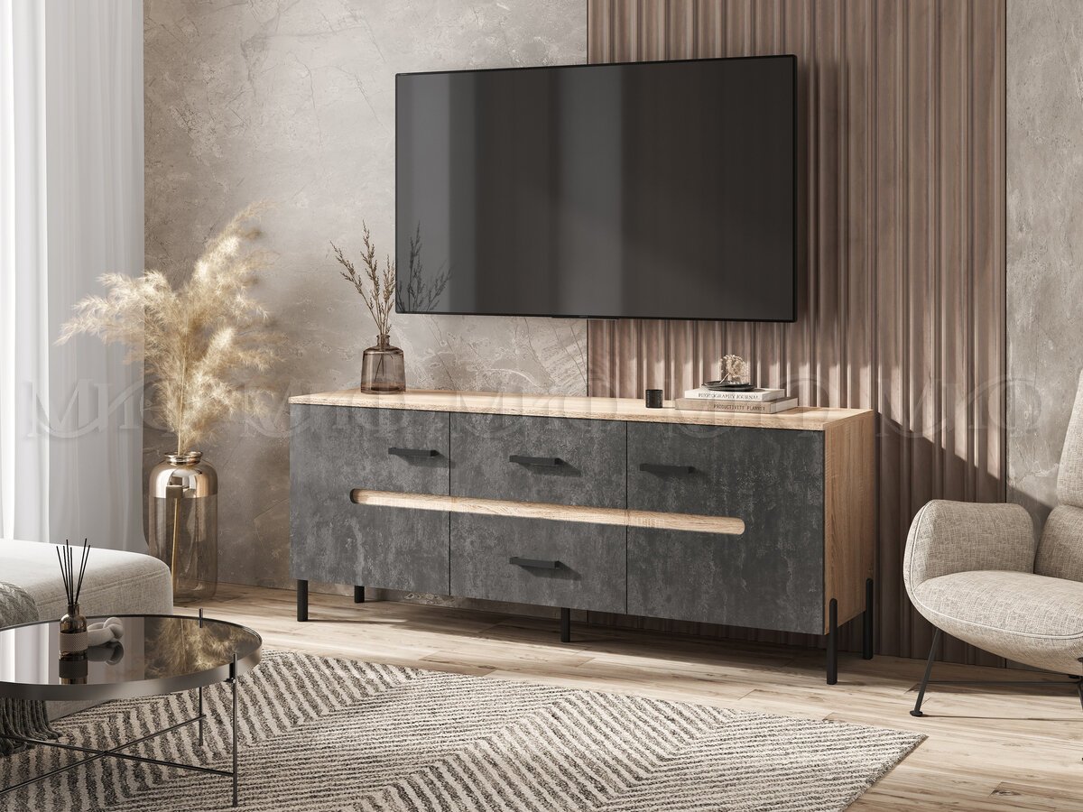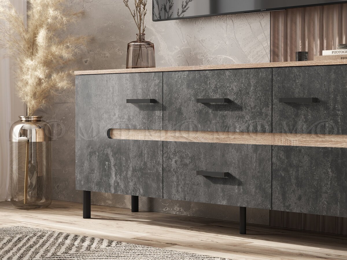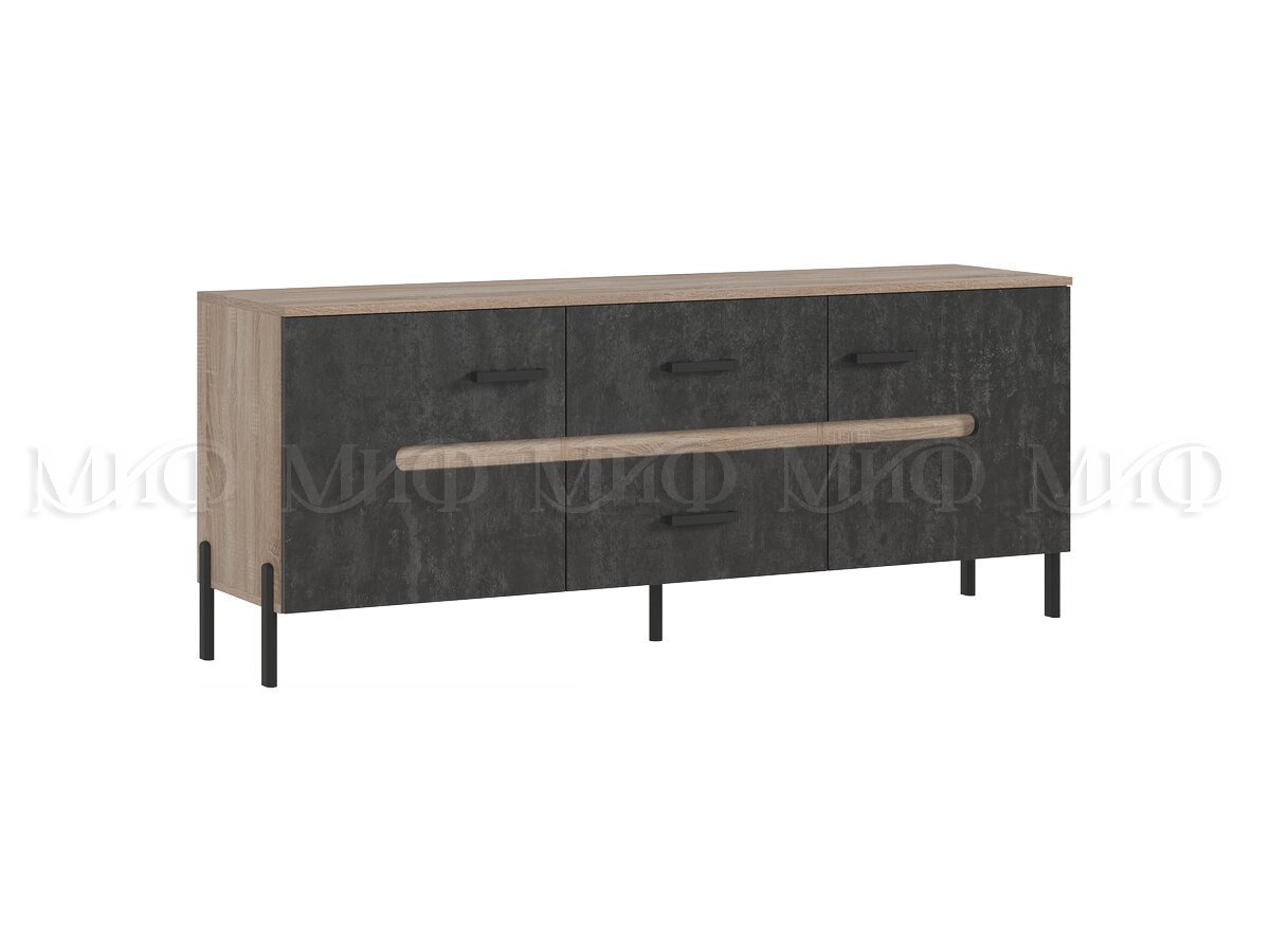 - Тумба ТВ (металл) Ким Бетон Графит, Дуб Сонома