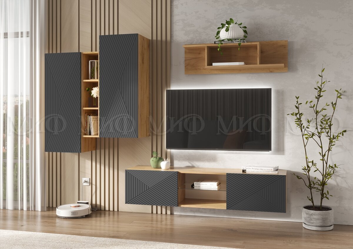 - Тумба ТВ подвесная 1500 Флэш Браш Графит, Дуб Крафт