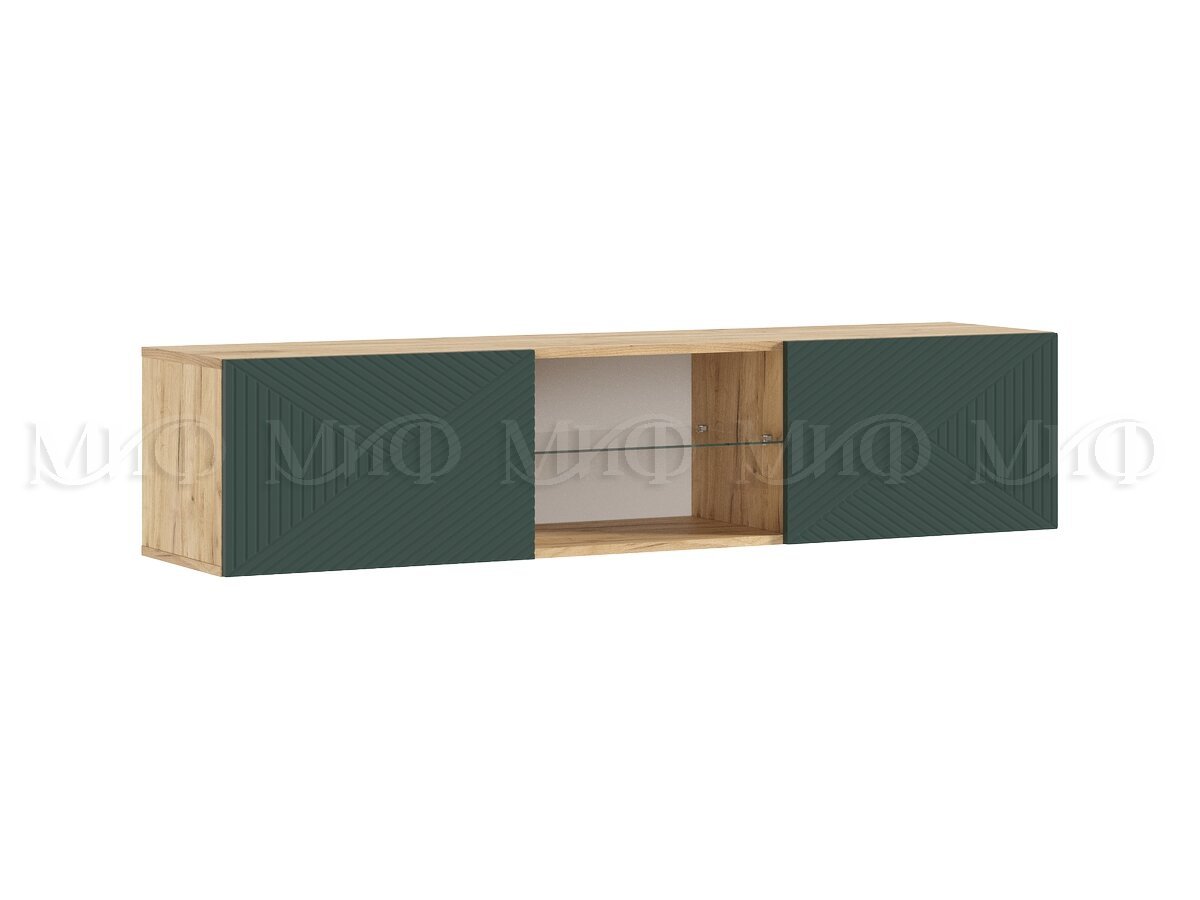- Тумба ТВ подвесная 1500 Флэш Браш Мени Грин, Дуб Крафт