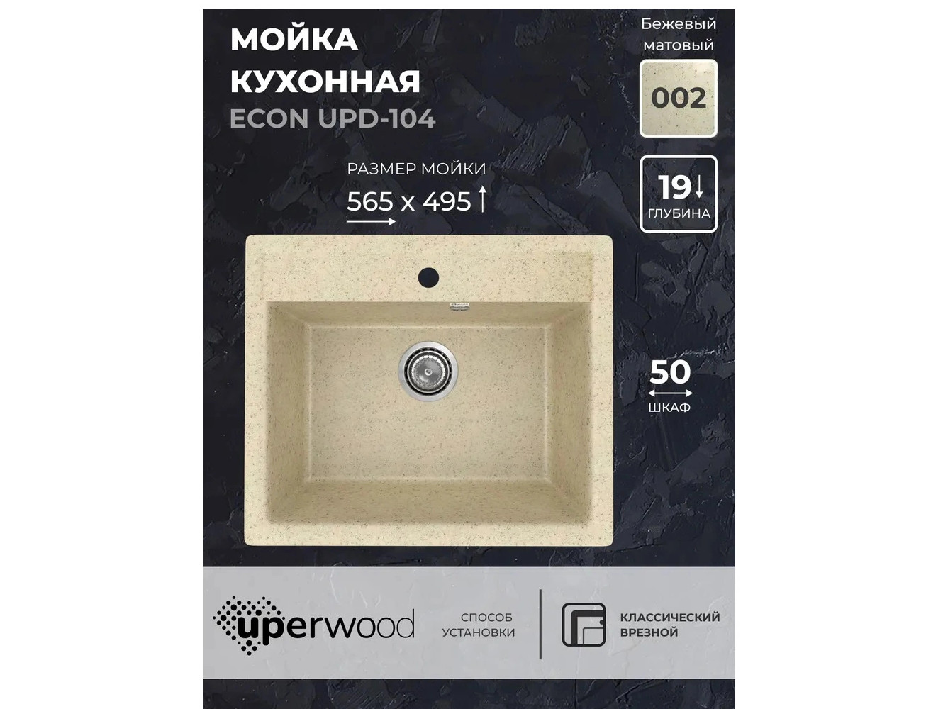 - Кухонная мойка Uperwood ECON UPD-104-002 бежевая матовая