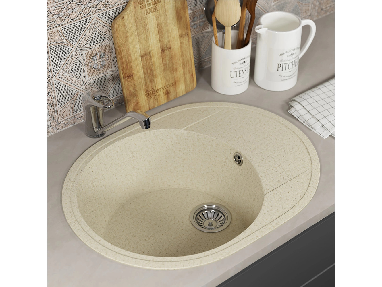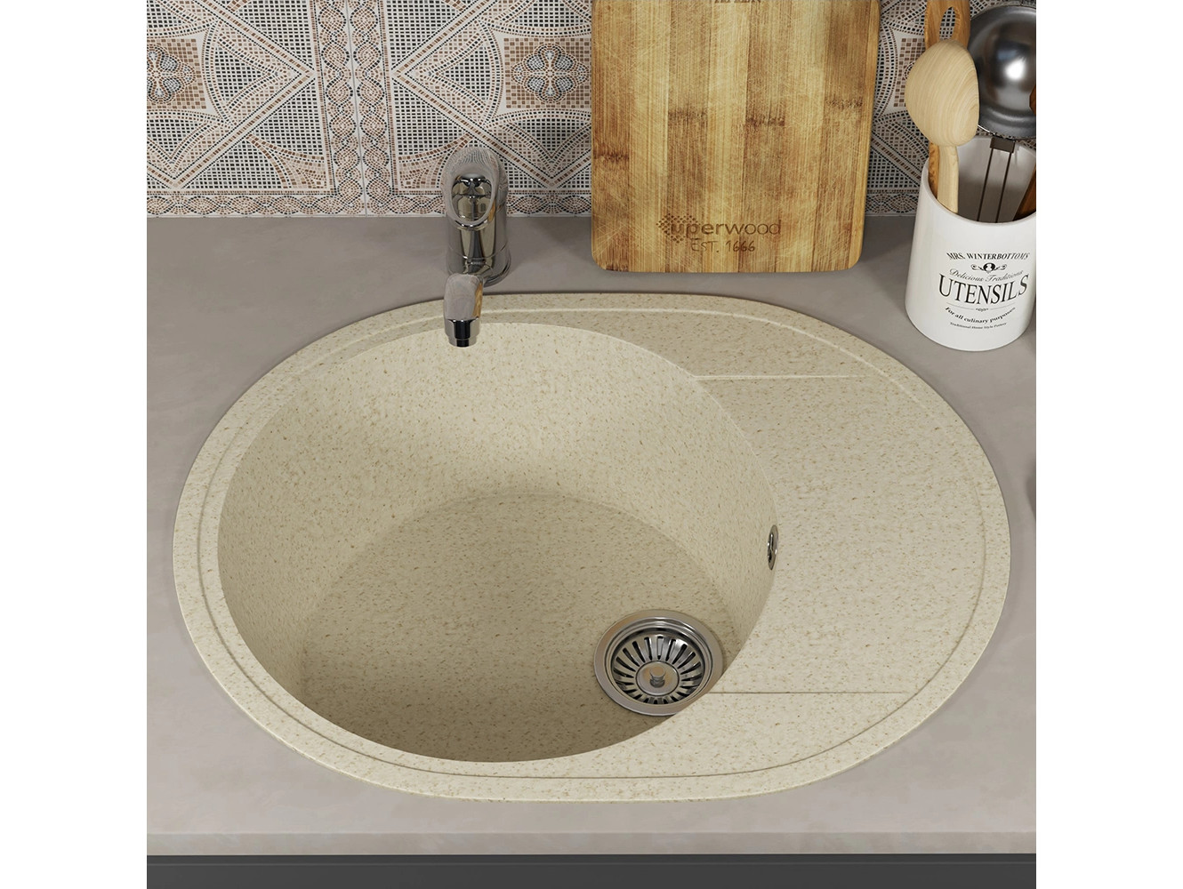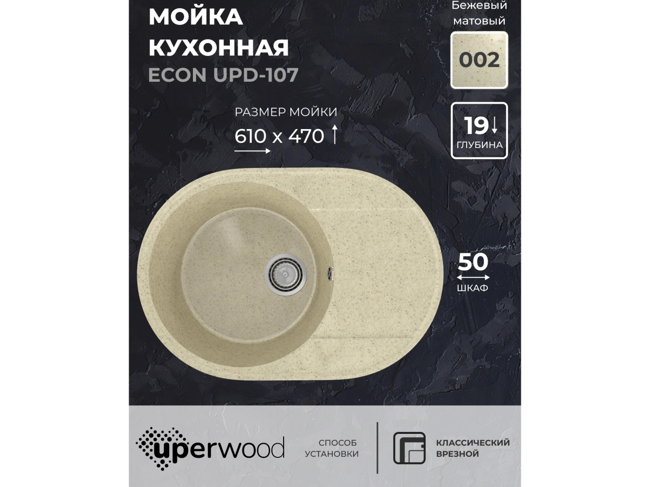 - Кухонная мойка Uperwood ECON UPD-107-002 бежевая матовая