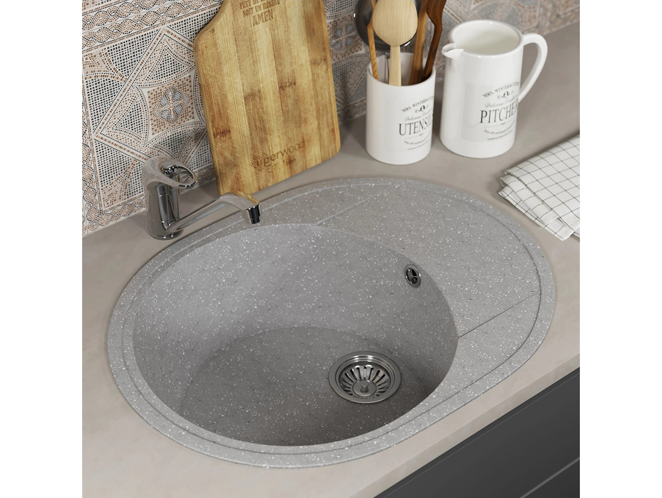 - Кухонная мойка Uperwood ECON UPD-107-003 серая матовая
