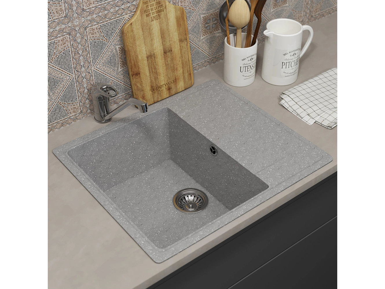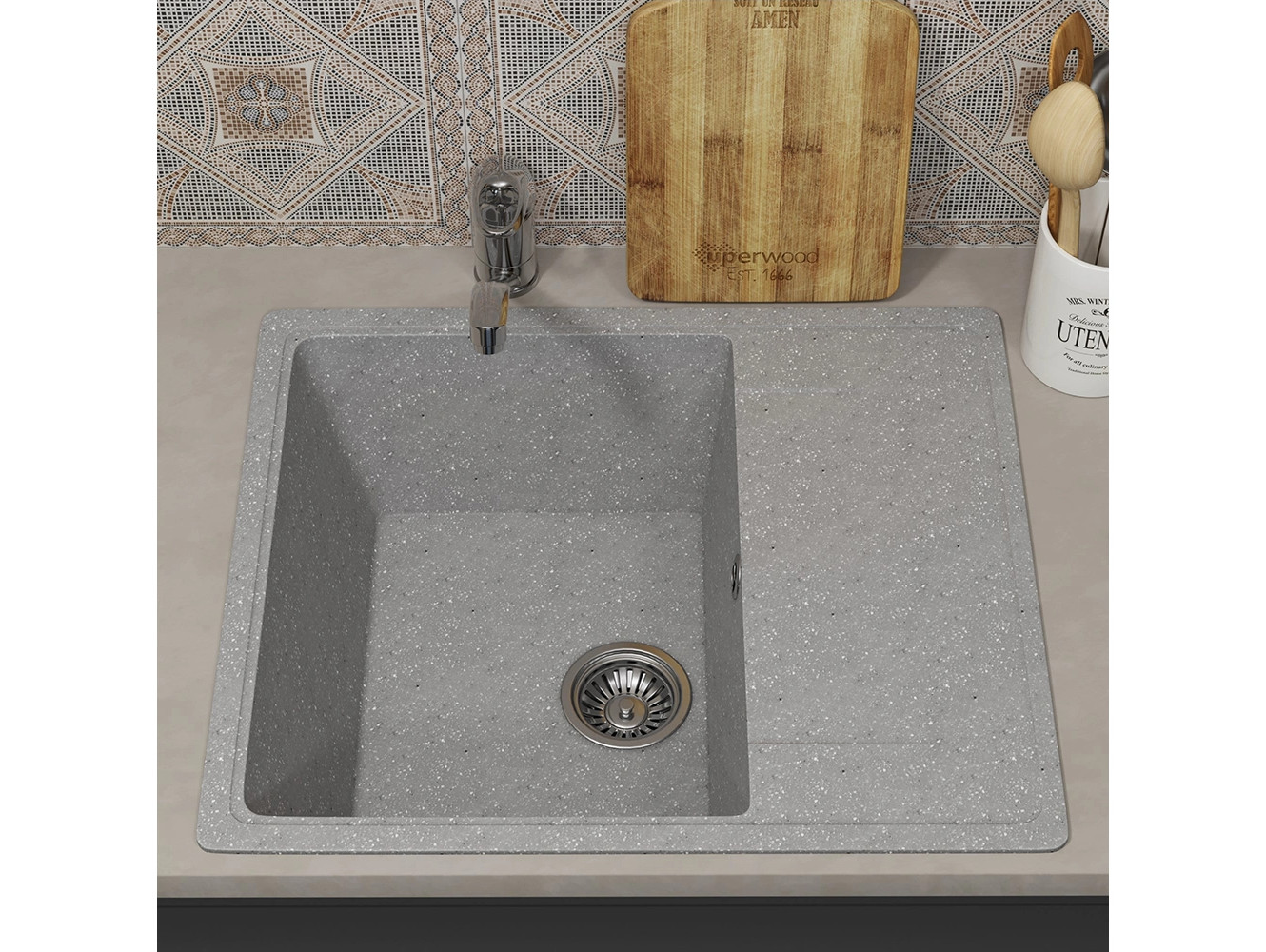 - Кухонная мойка Uperwood ECON UPD-201-003 серая матовая