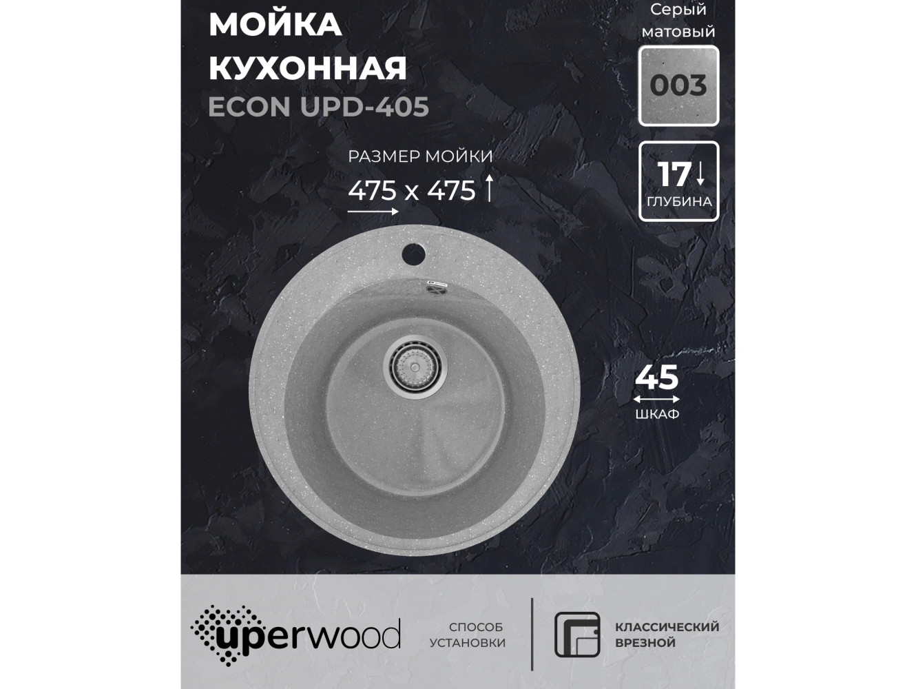 - Кухонная мойка Uperwood ECON UPD-405-003 серая матовая