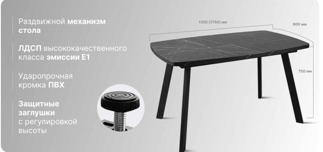 Стол раздвижной Прованс.1 пластик мрамор черный - комплект ног №12.1