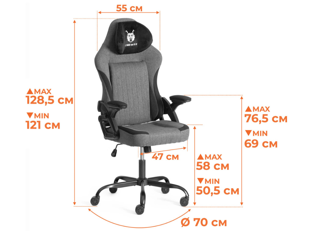 - Кресло iWolf ткань черный/серый