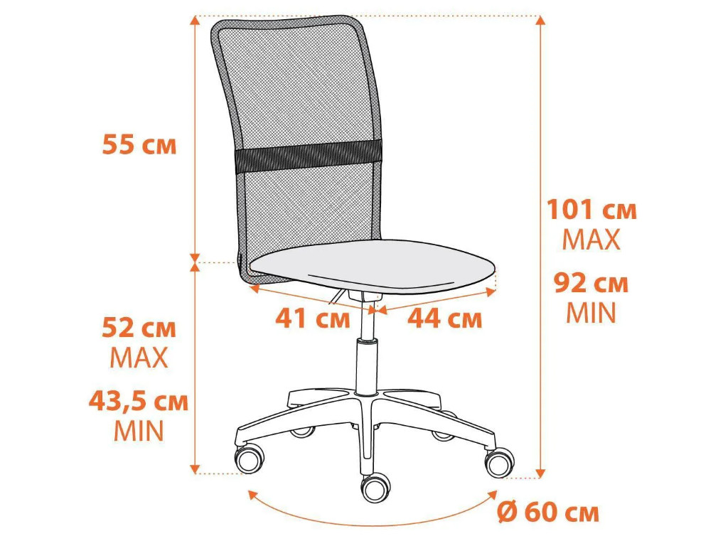 - Удобная спинка из однослойной сетки, обеспечивающей вентиляцию в жаркое время года