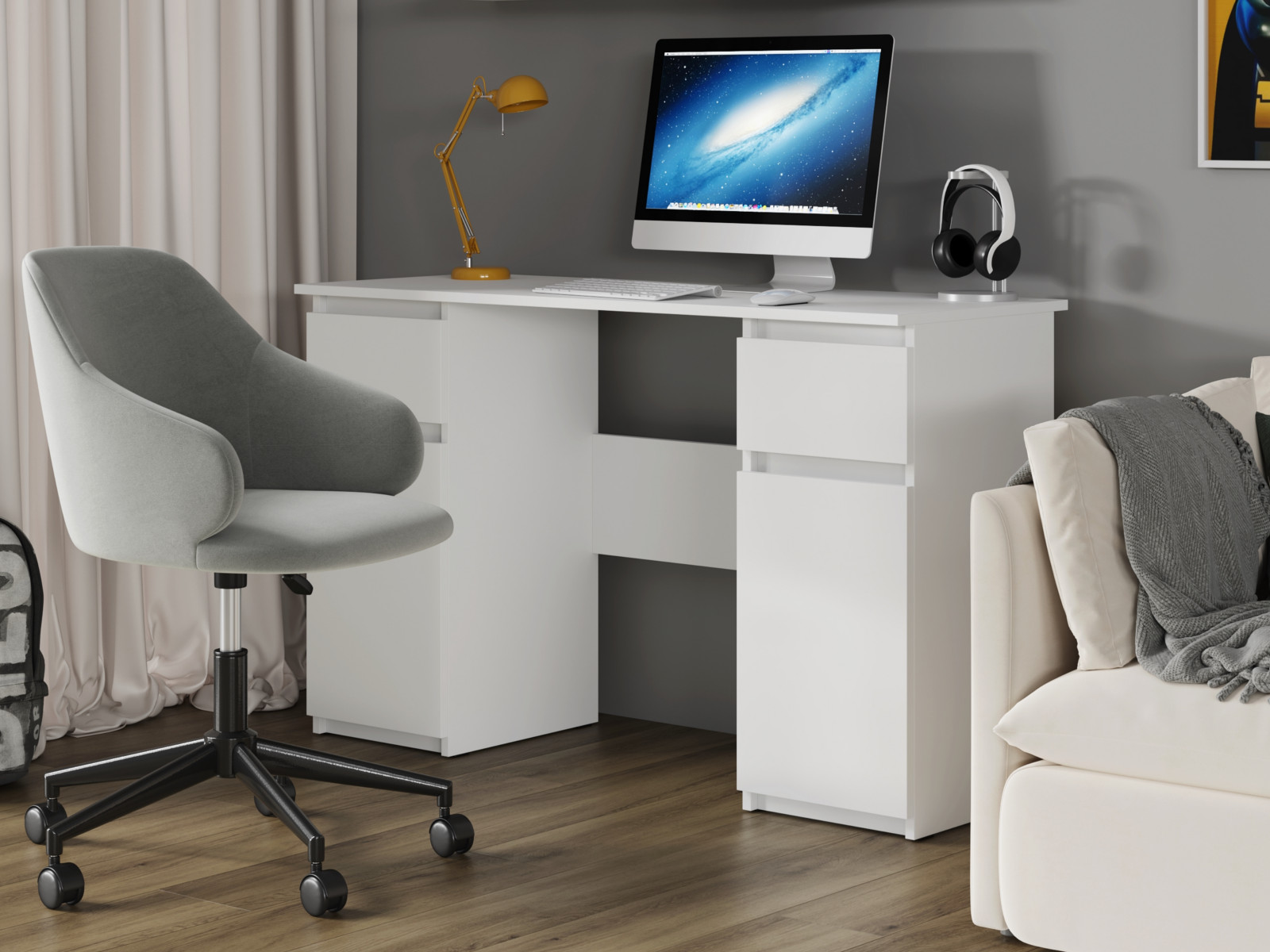 - Широкая столешница (1158 × 450 мм) с кромкой в цвет стола.