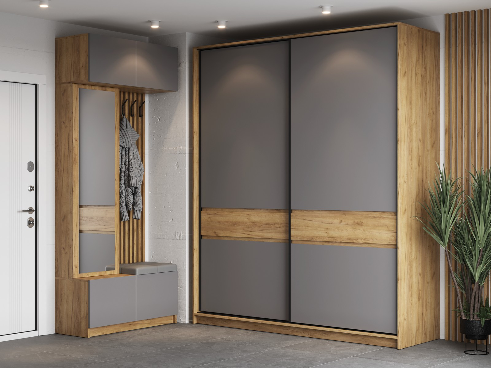 Модульная прихожая Бостон ЛДСП серый шифер с трехдверным шкафом