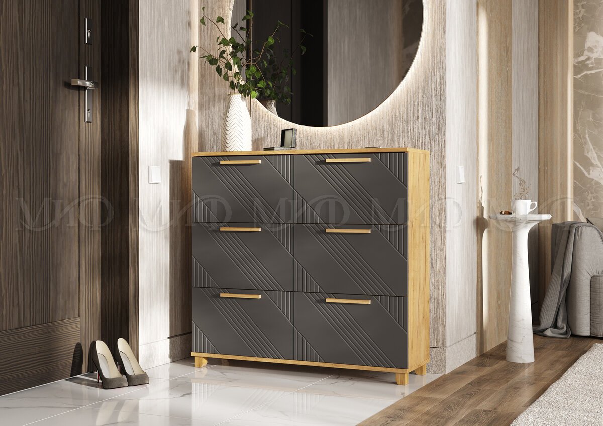 - Обувница (1000) Ирис Браш Графит, Дуб Крафт