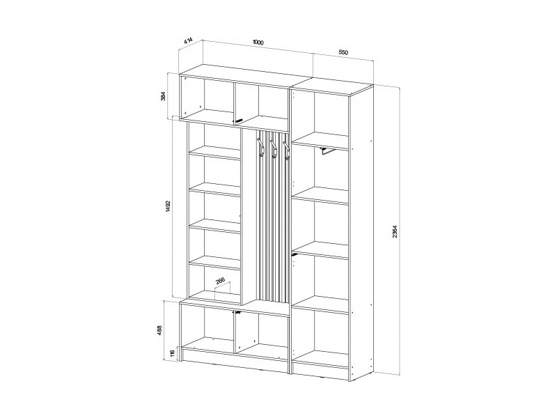 Габариты: 1550 (ширина) х 414 (глубина) х 2364 (высота) мм.