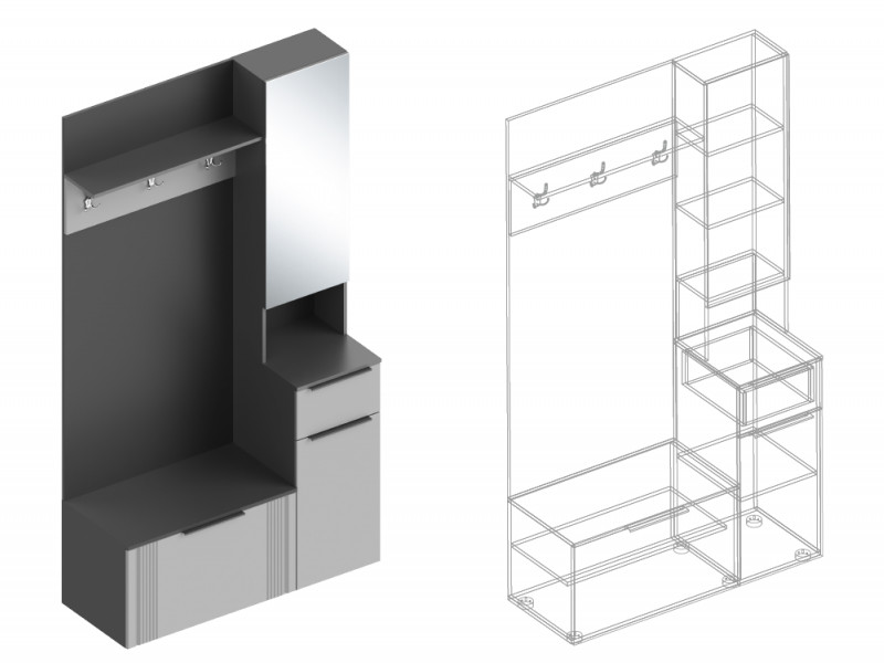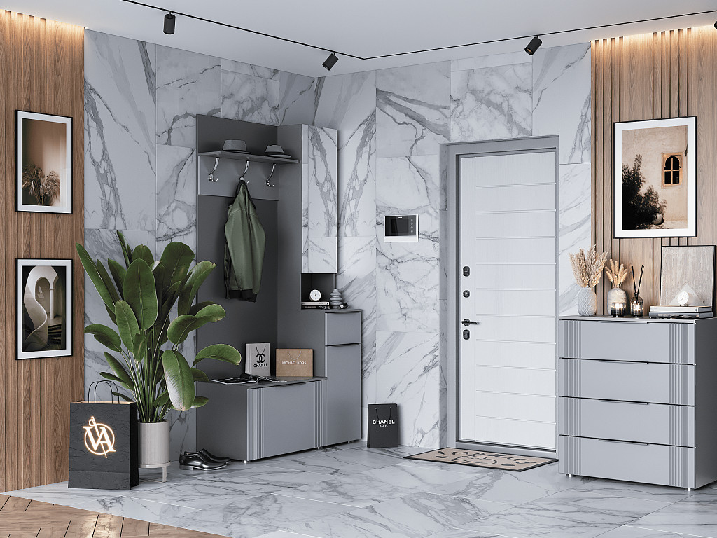 - Фасад: МДФ с фрезеровкой, плёнка ПВХ Силк Маус толщина 320-350 микрон МКМ (с праймером)