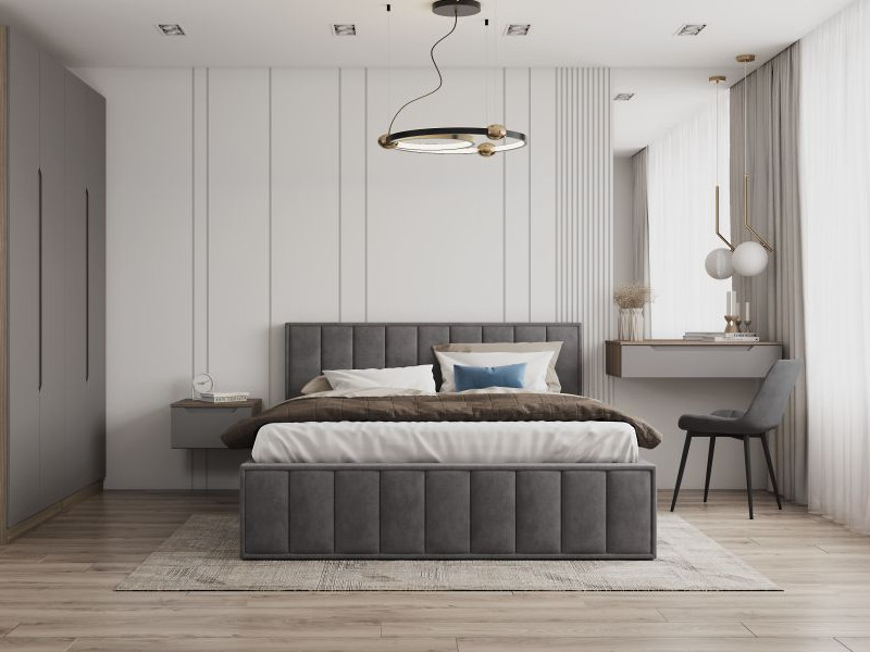 В комплектацию кровати входит ортопедическое основание с подъемным механизмом, благодаря которому всегда доступны дополнительные зоны хранения
