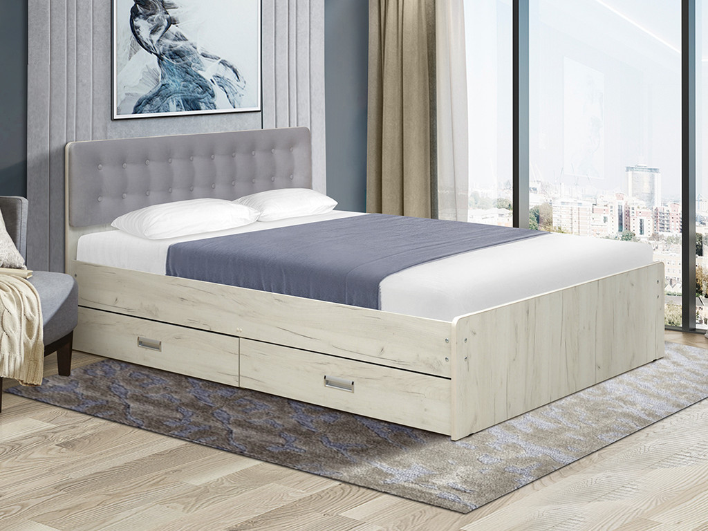 - Кровать двойная №6 с ящиками 1400х2000 с мягкой спинкой