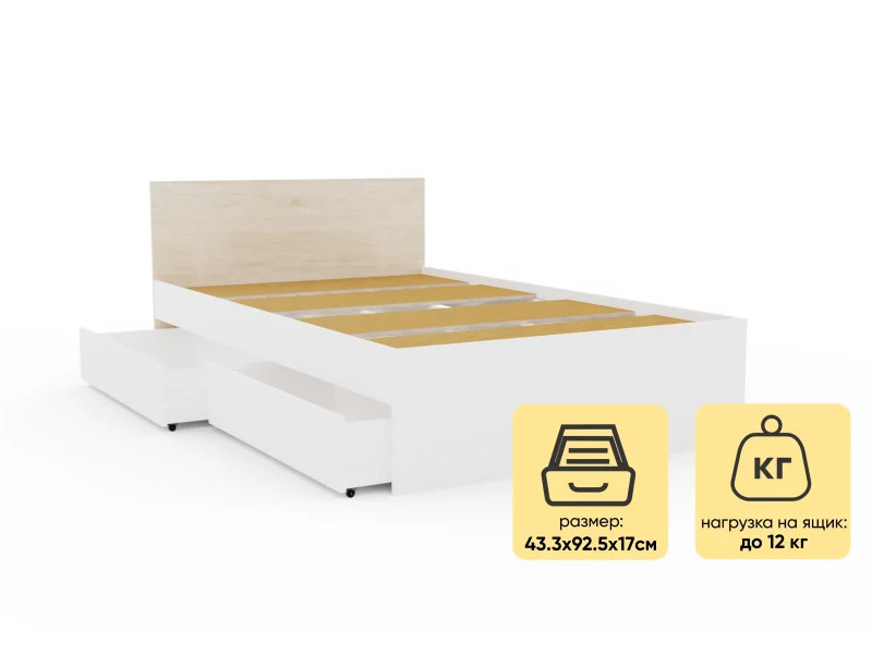 - Кровать Монблан с ящиками 120х200 см Белый Шагрень