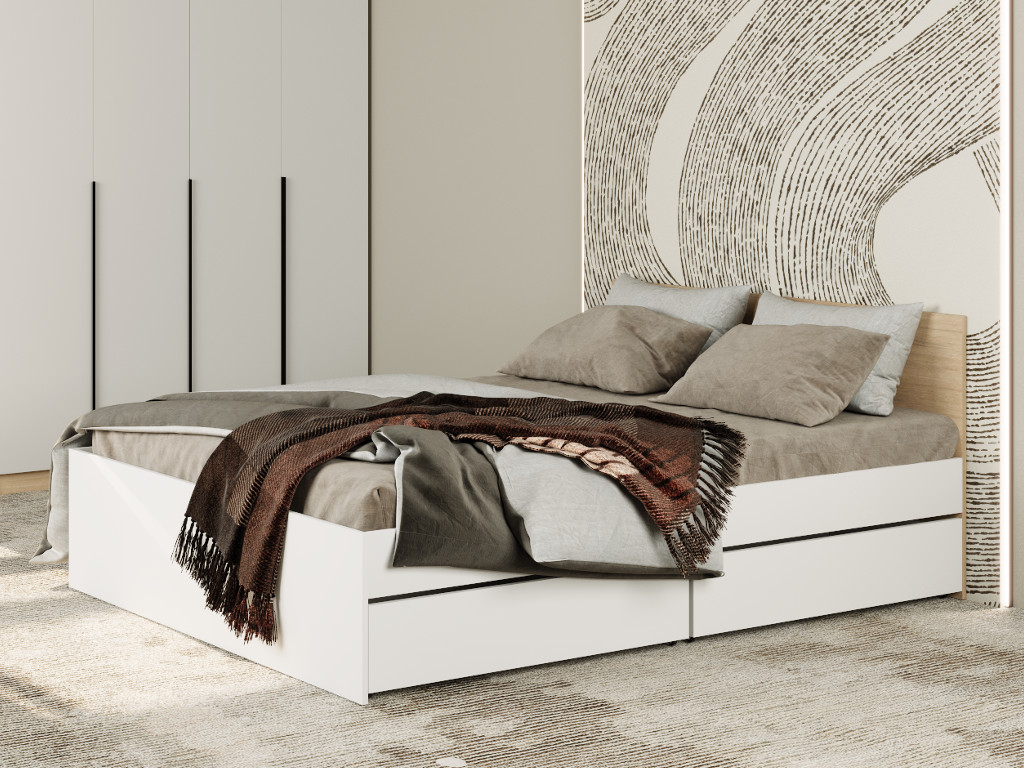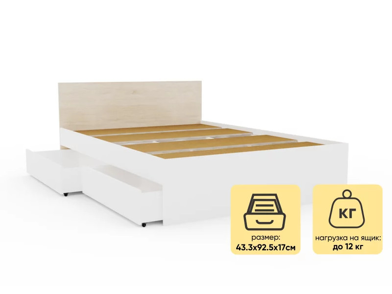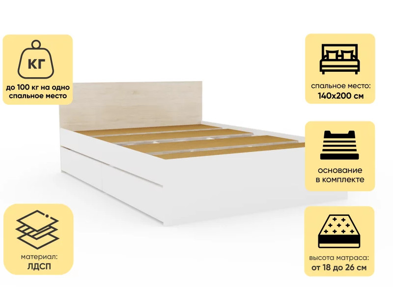 - Кровать Монблан с ящиками 140х200 см Белый Шагрень