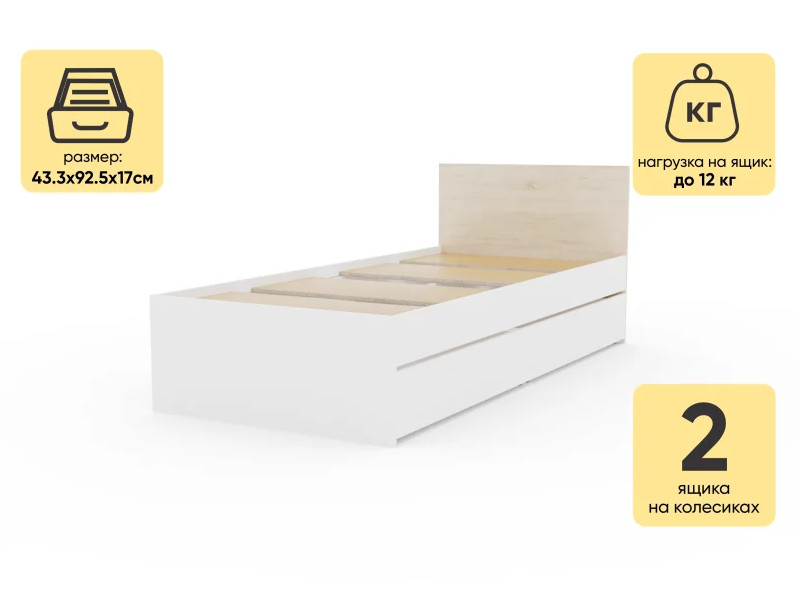 - Кровать Монблан с ящиками 90х200 см Белый Шагрень