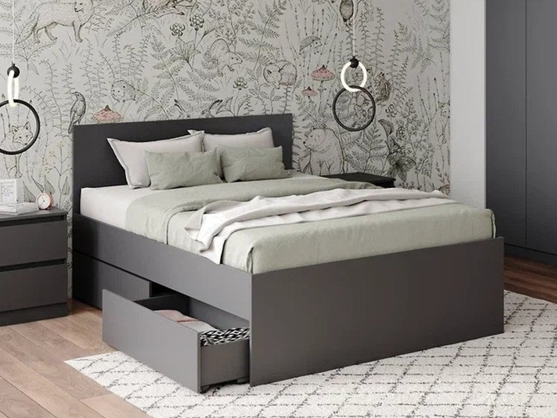 - Кровать Мори КРМЯ 1400.1/1 графит с ящиками МЯ 995.2