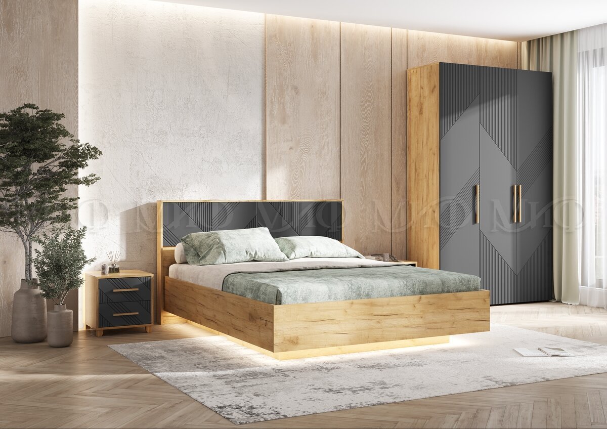 - Кровать парящая 1600 Ирис (ортопед металл) Браш Графит/Дуб Крафт