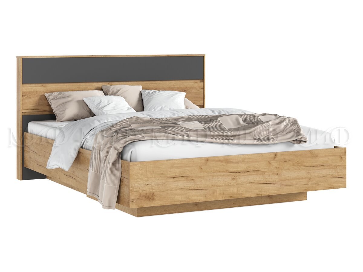 - Кровать парящая 1600 Роджина (с ПМ) Графит/Дуб Крафт