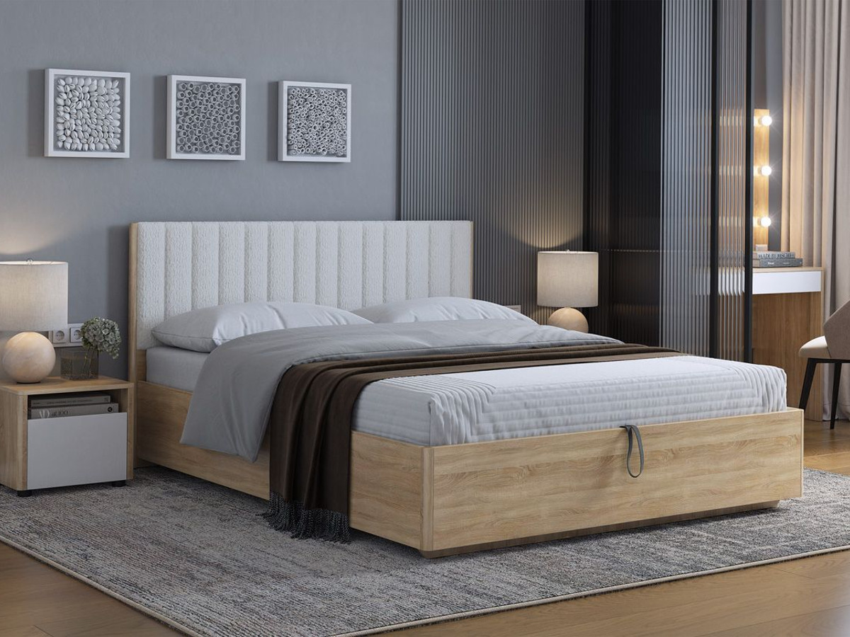 - Кровать с подъемным механизмом Юлия 160х200 см дуб сонома