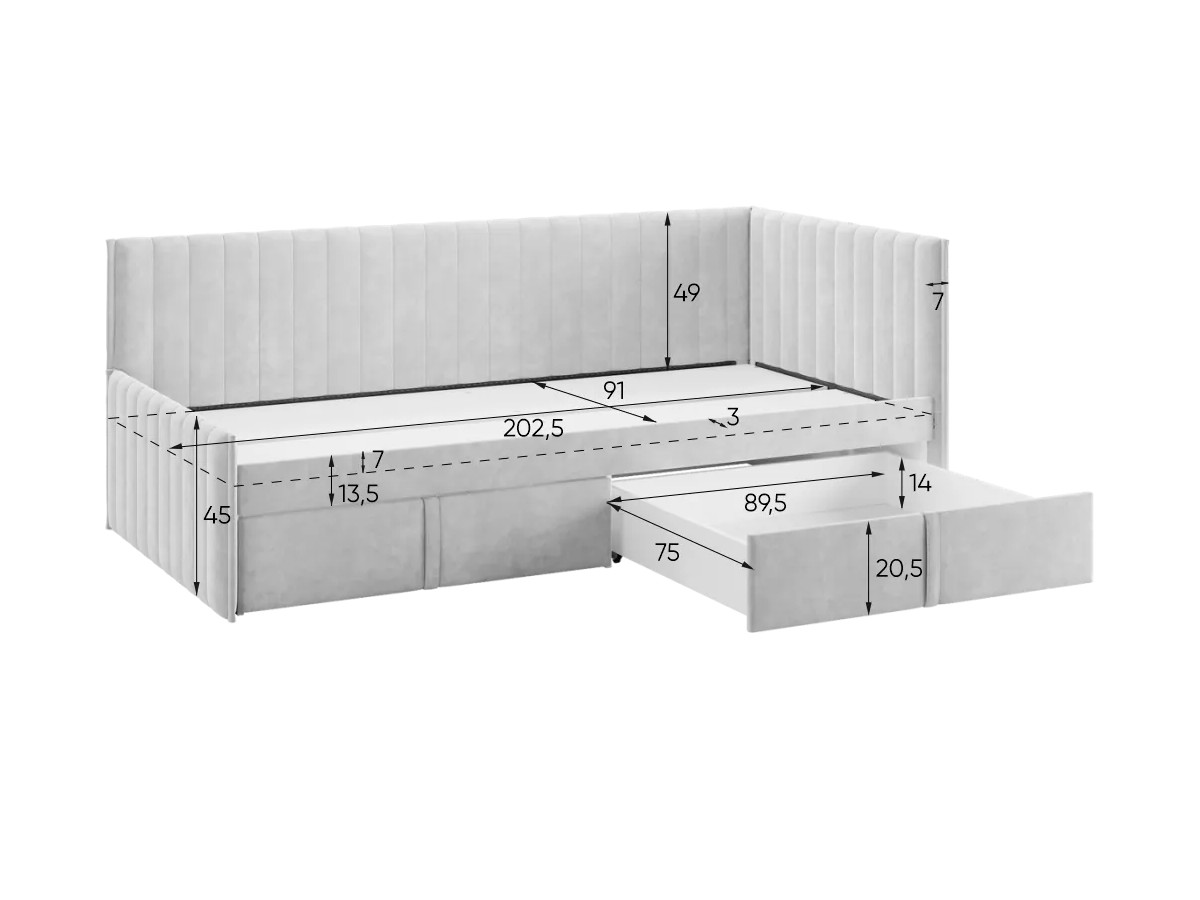 - Кровать-тахта с ящиками Твикс цвет велюра мята