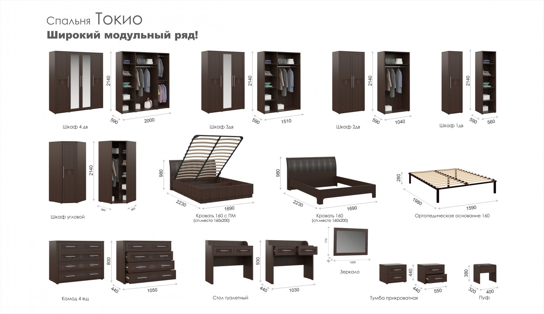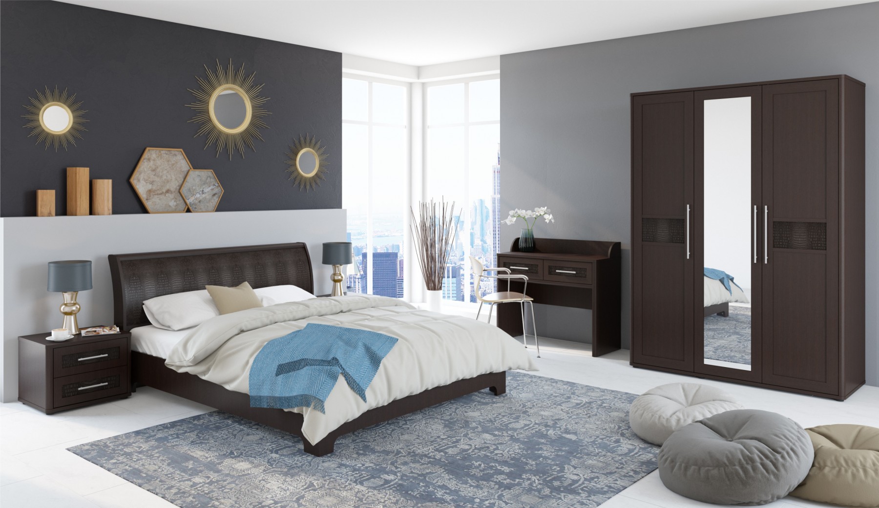 Спальня модульная, комплектуется по вашему выбору. Цена указана за комплект на главном фото - тумба прикроватная, кровать 160 без основания, стол туалетный, шкаф 3 дверный