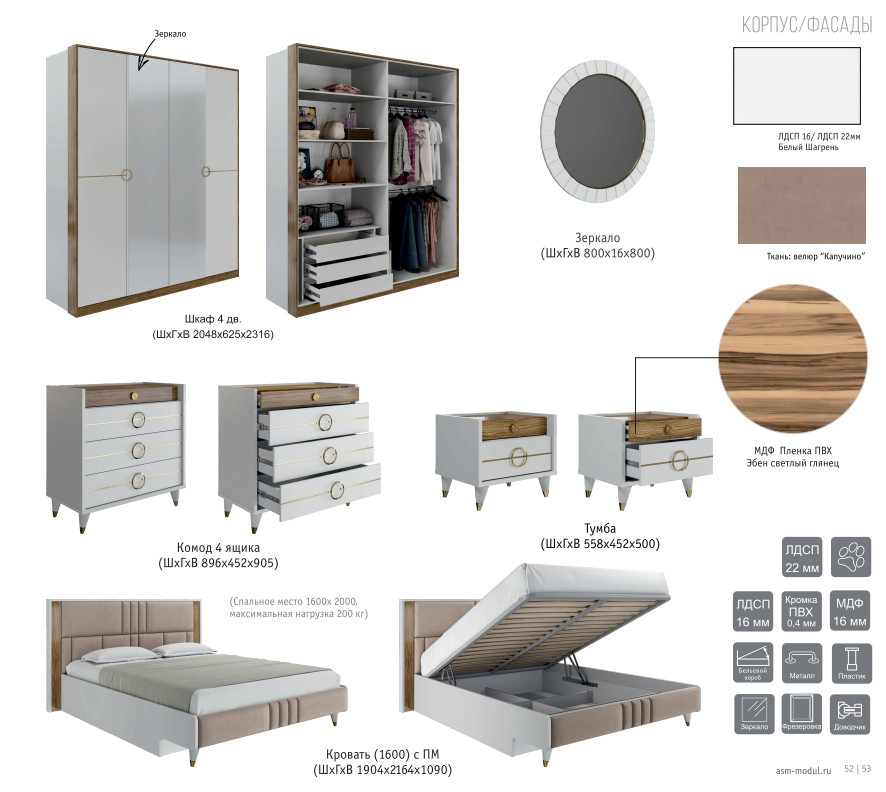 - Спальня Модена белый/эбен светлый