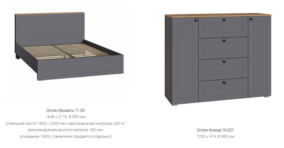- Спальня Остин Серый Графит
