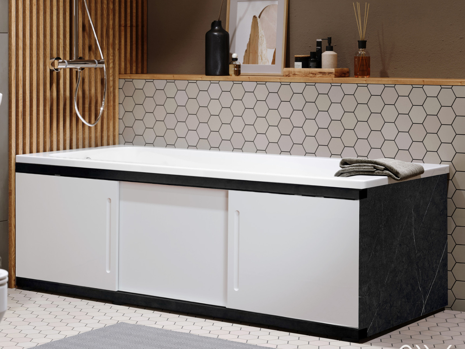 - Экран под ванну МДФ Alt Black 1600 мм белый