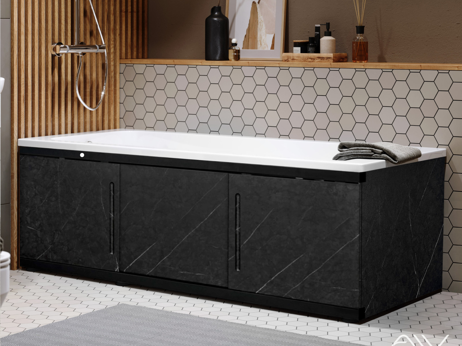 - Экран под ванну МДФ Alt Black 1800 мм черный мрамор