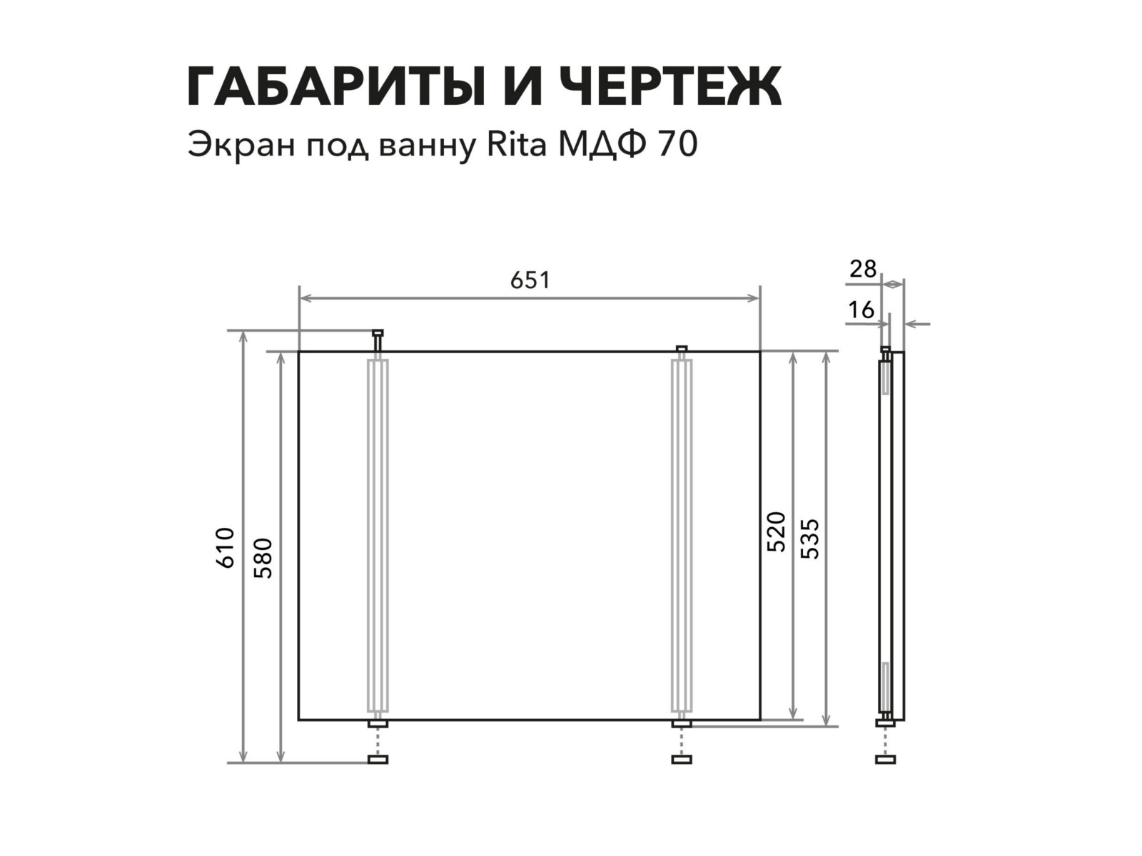 - Экран под ванну МДФ Rita 0,7 торцевой серый бетон
