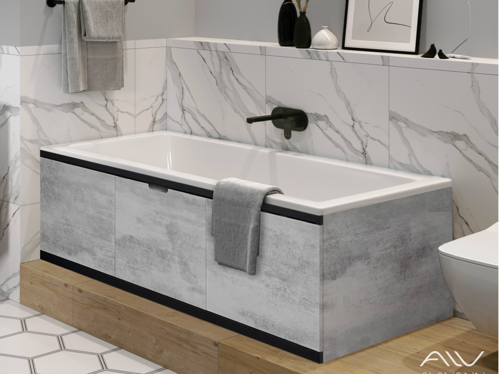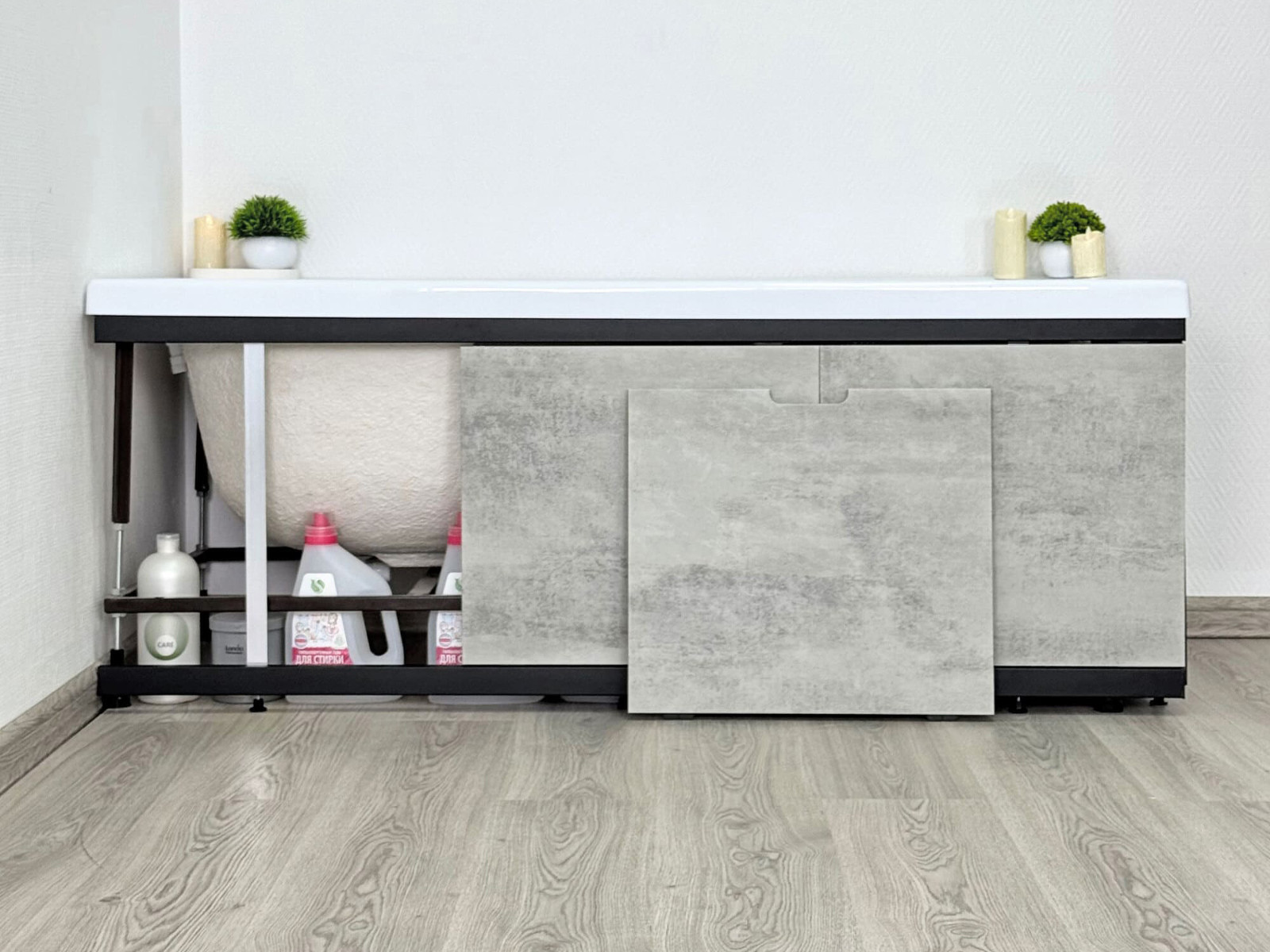 - Экран под ванну МДФ Rita Black 1500 мм серый бетон