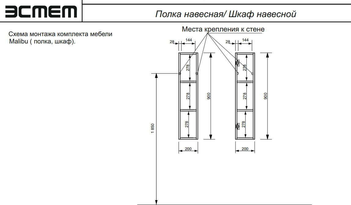 - Шкаф навесной Malibu левосторонний