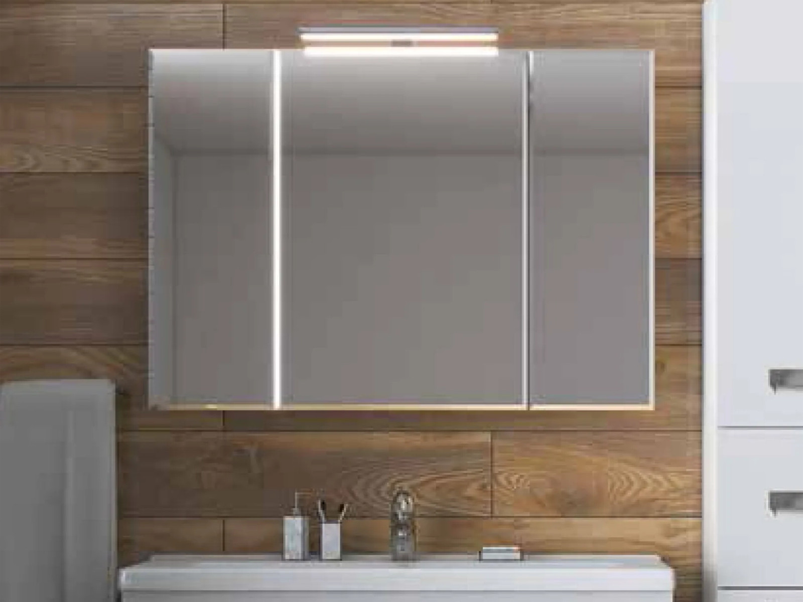 - Шкаф навесной с зеркалом Plaza 1000 со светильником