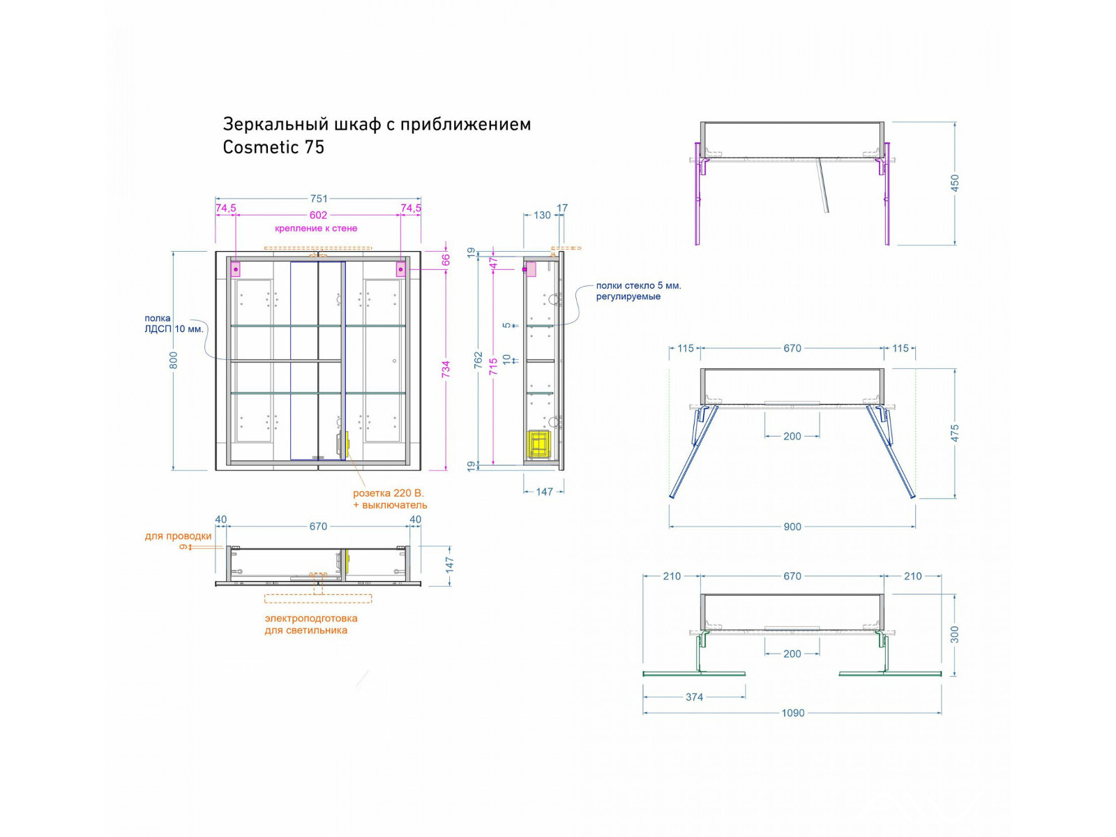 - Шкаф-трюмо зеркальный Cosmetic 75 без светильника